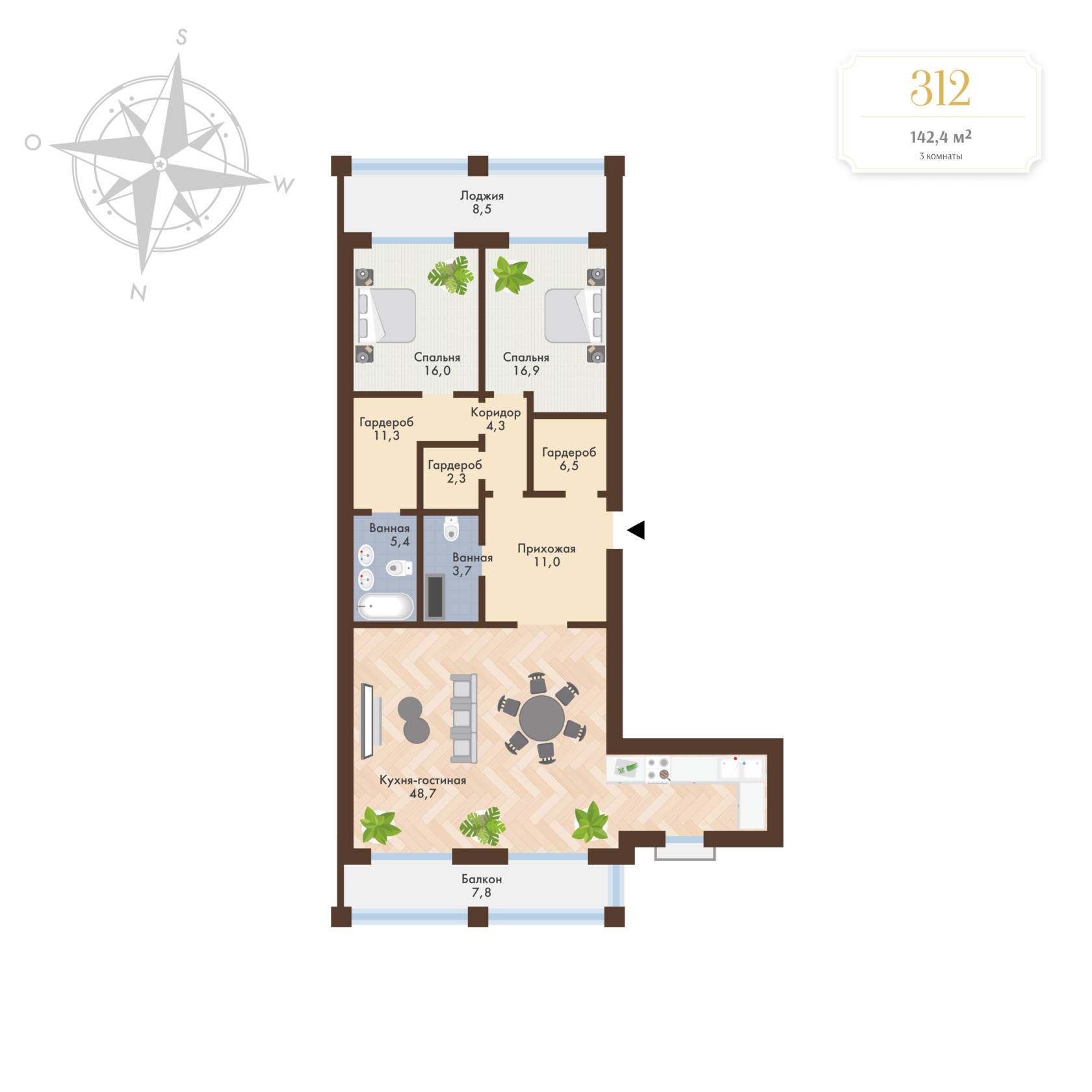 Окна данного апартамента выходят на две стороны, а окна спален на залив. За чашечкой ароматного кофе можно встречать день и любоваться восходами над Екатериновкой.