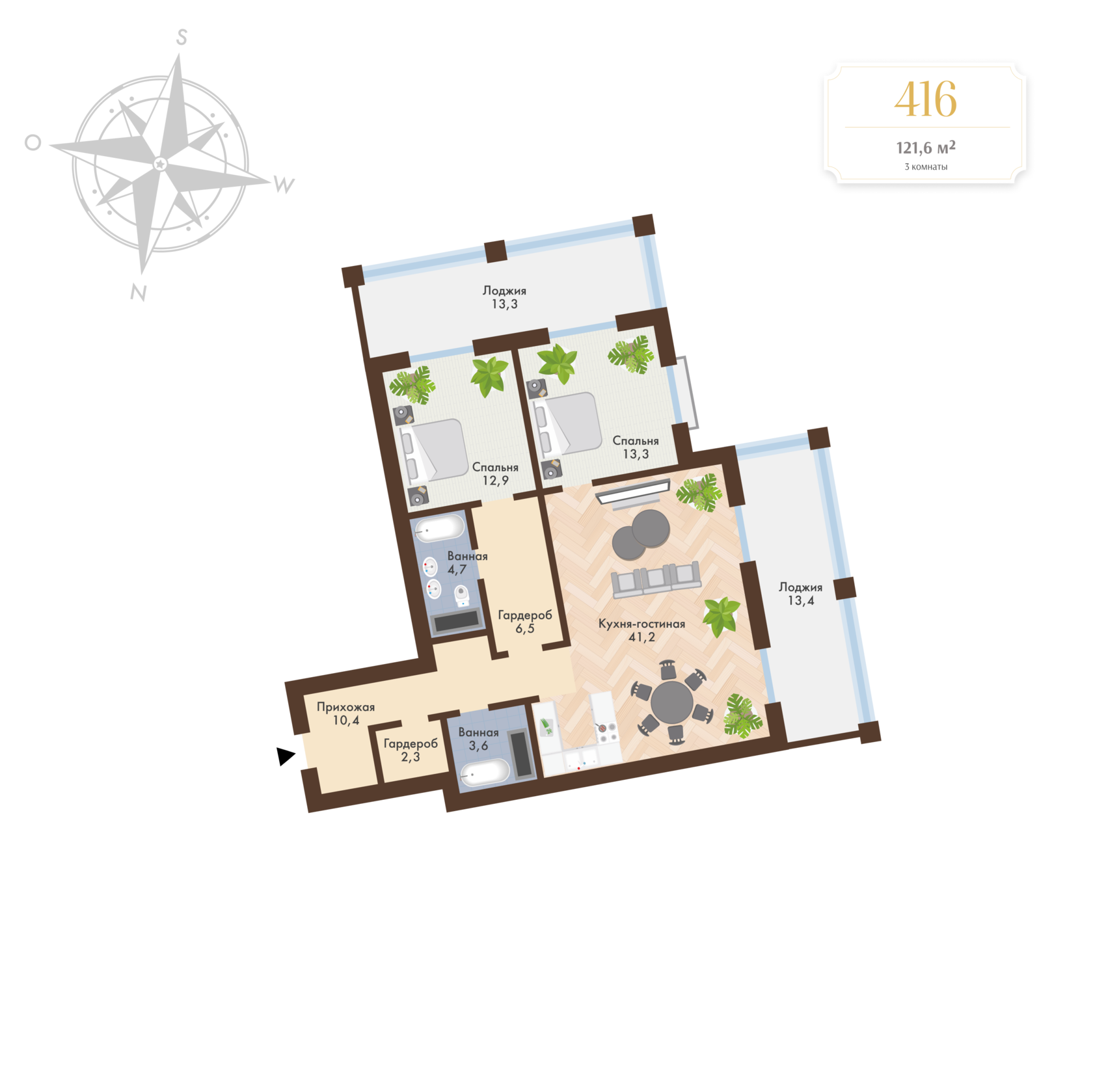 Просторный апартамент с продуманной планировкой. Окна двух спален выходят на залив, а гостиная и гостевая спальня выходят окнами на Волгу и придают этому апартаменту исключительные видовые характеристики.