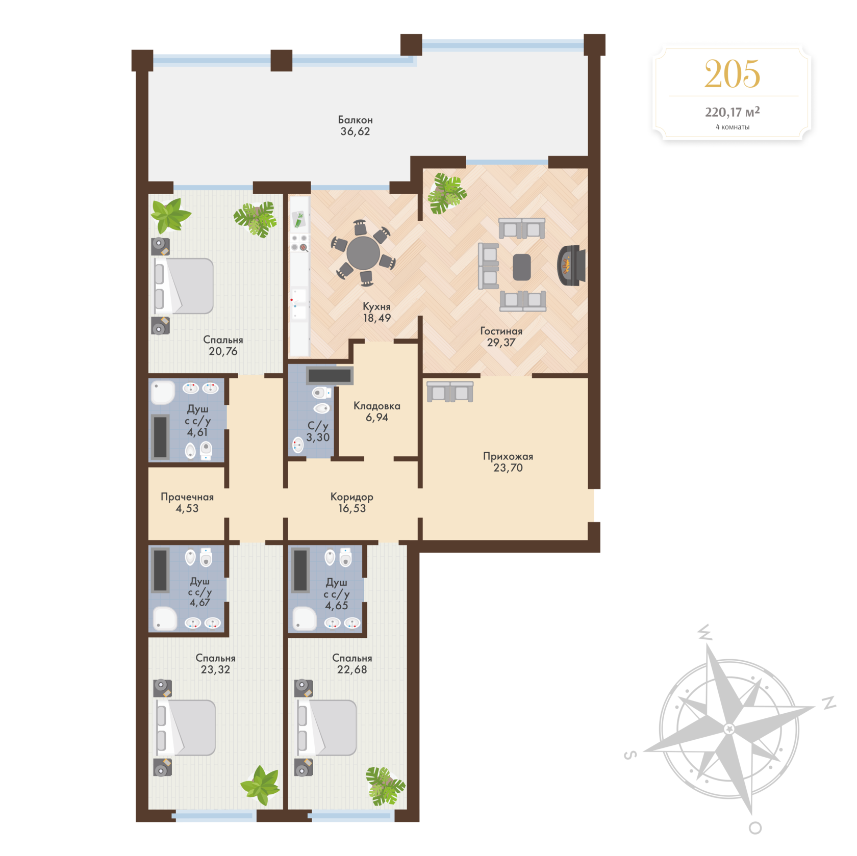 Просторный апартамент с видами на залив и Волгу. В уютной гостиной можно проводить с семьей время у камина и любоваться дивными закатами. Планировка данного апартамента максимально продумана и функциональна.